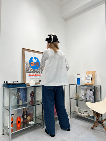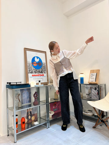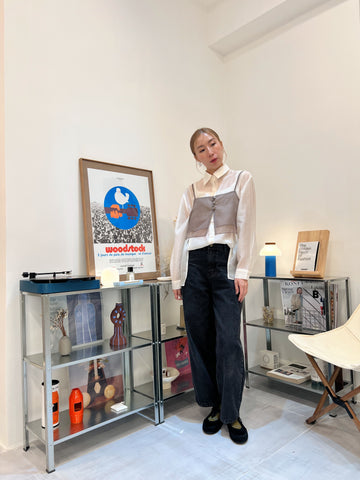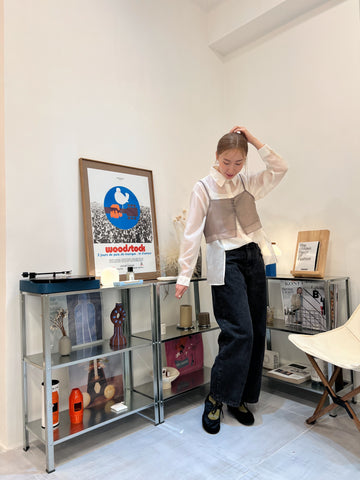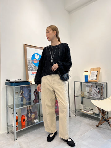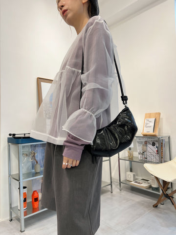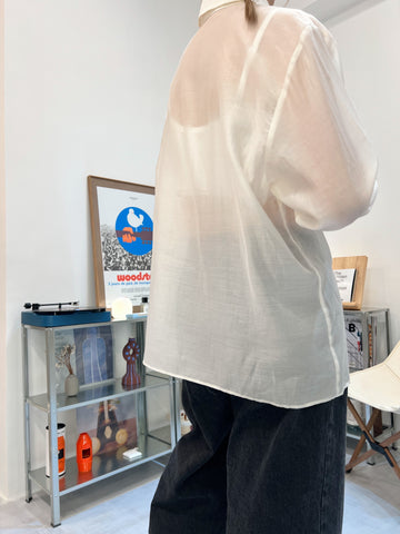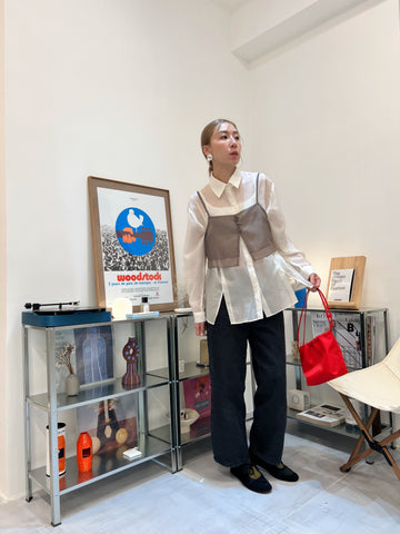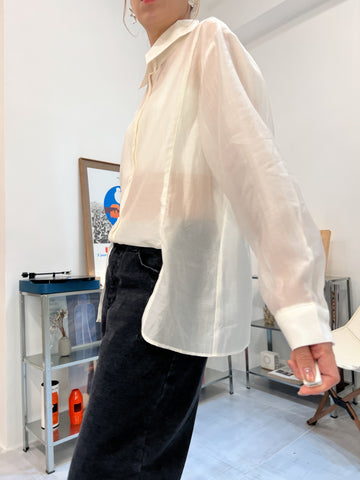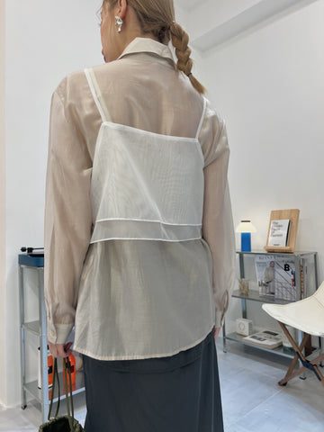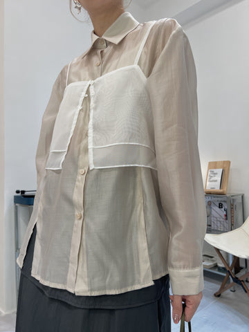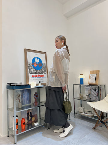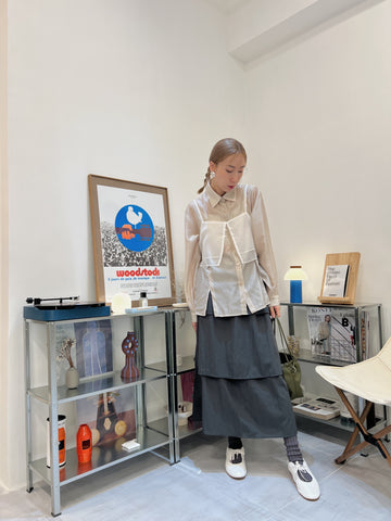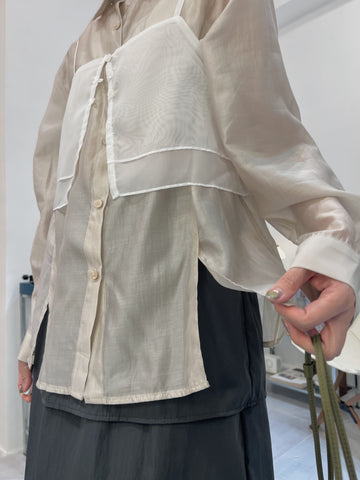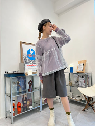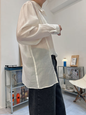 開叉輕透恤衫/米白