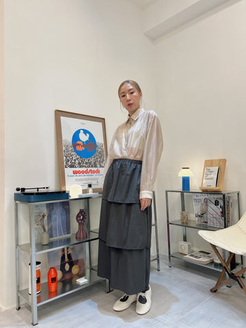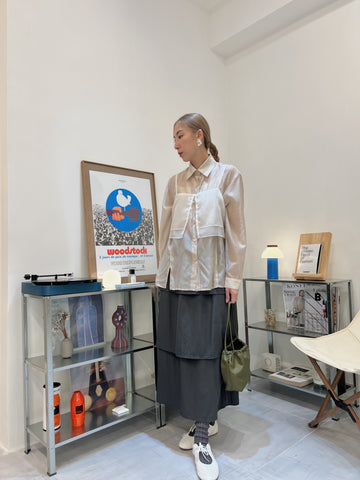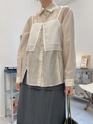 開叉輕透恤衫/杏