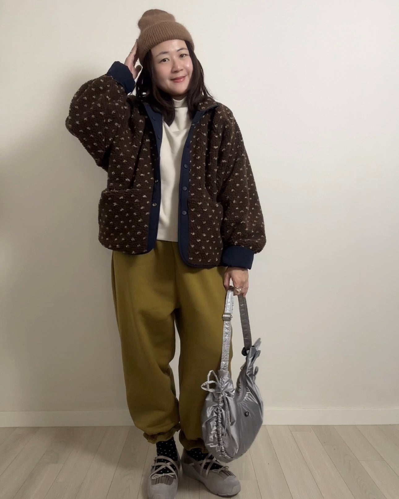 雙面點點外套/深藍+啡