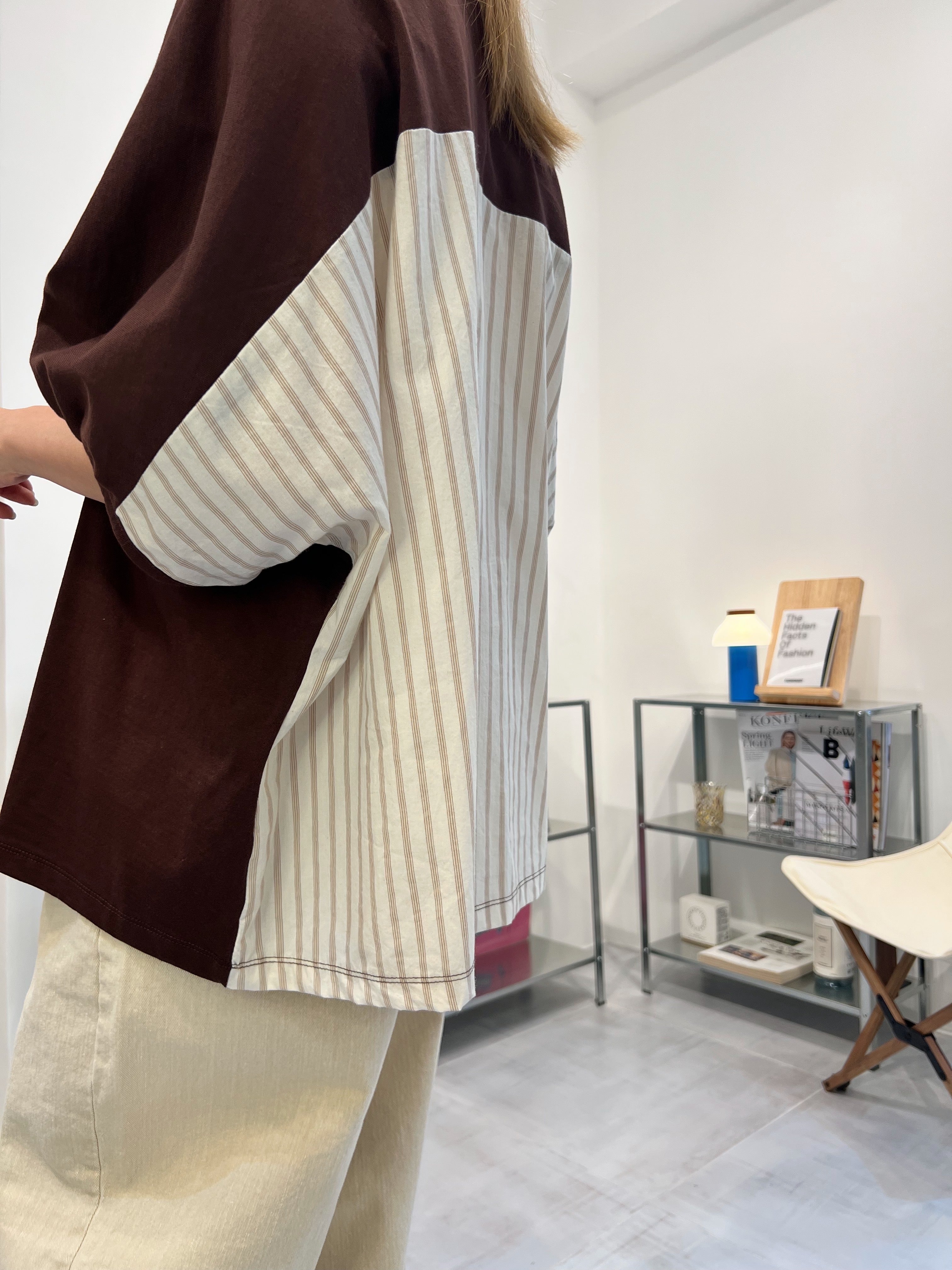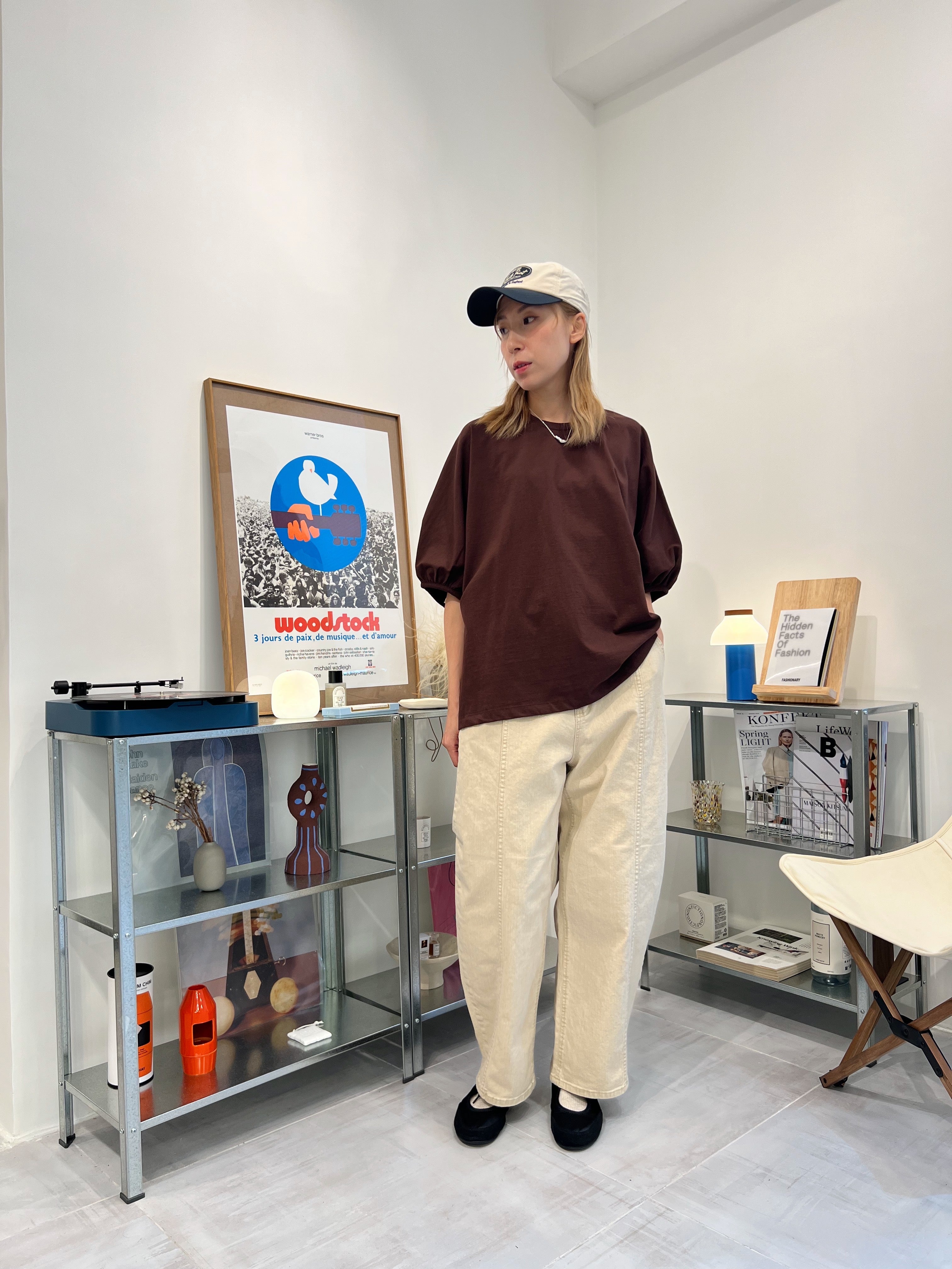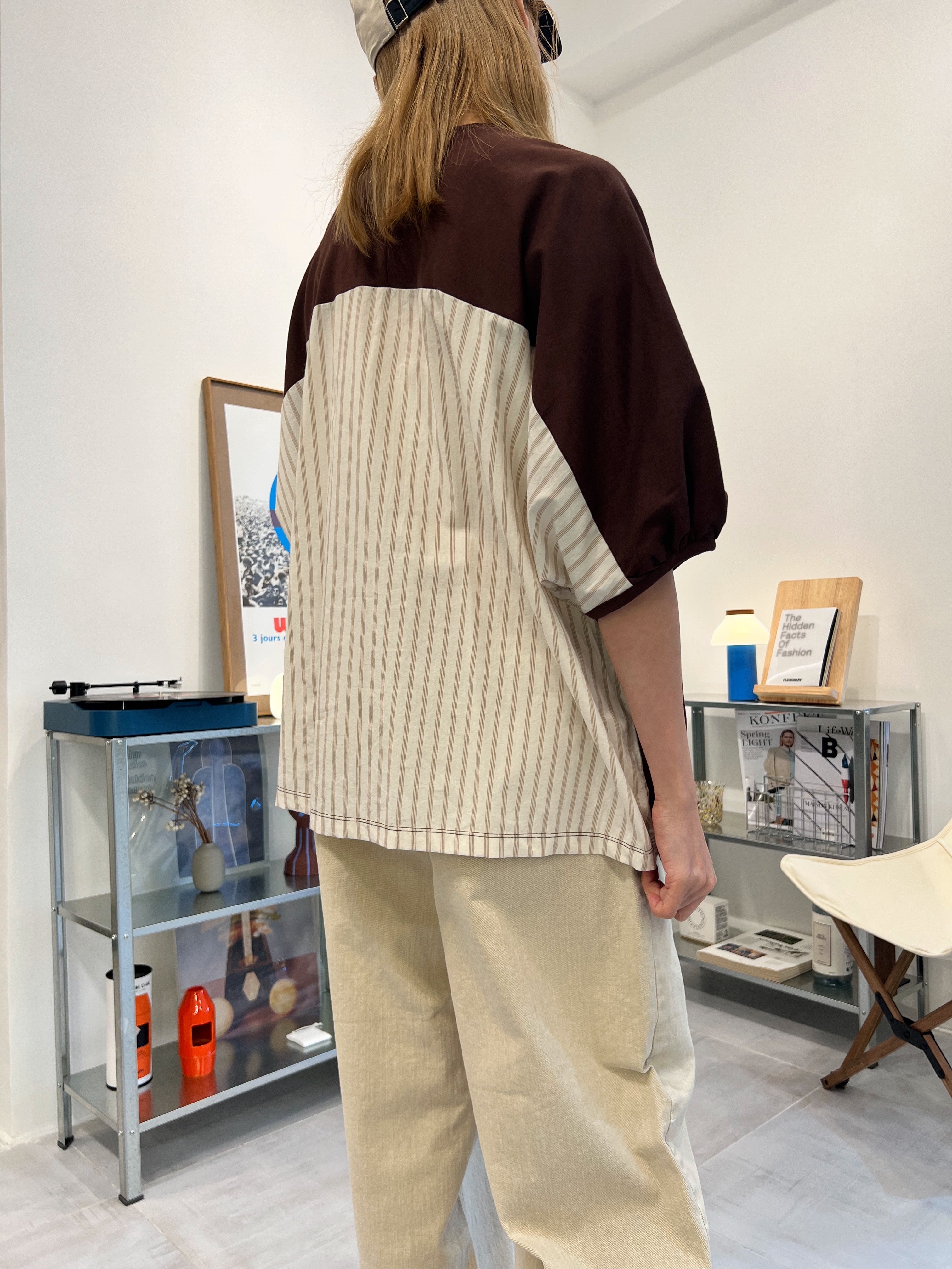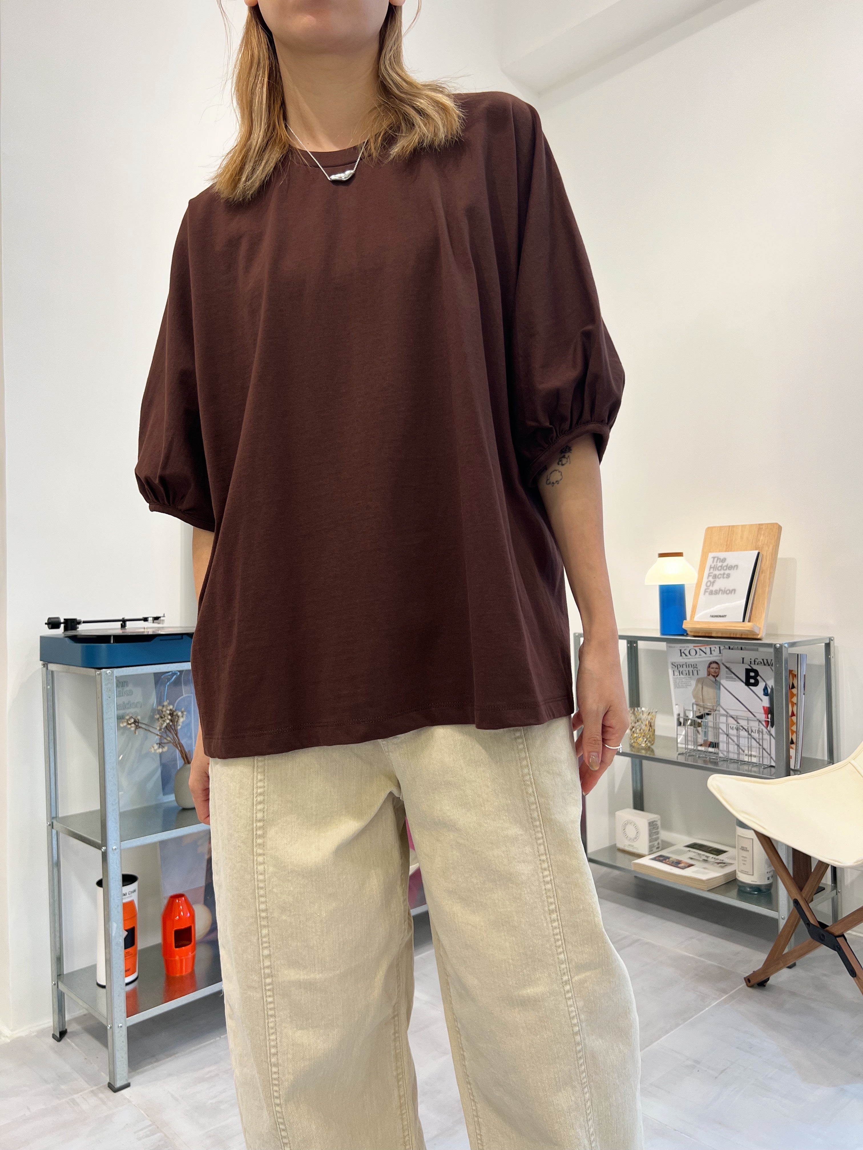後併布泡泡袖T-shirt/啡